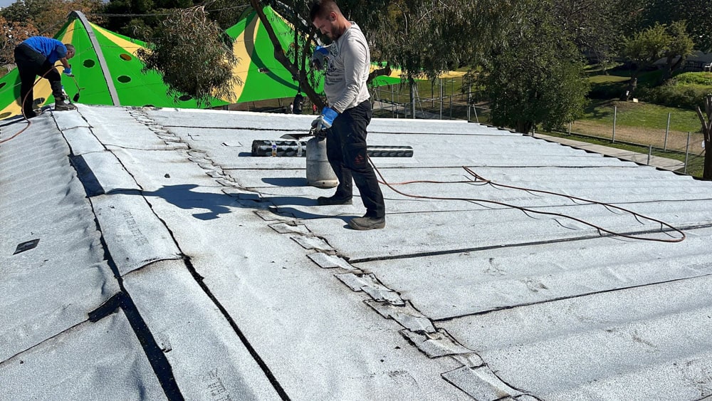 צוות ארגמן איטום במהלך איטום גג
