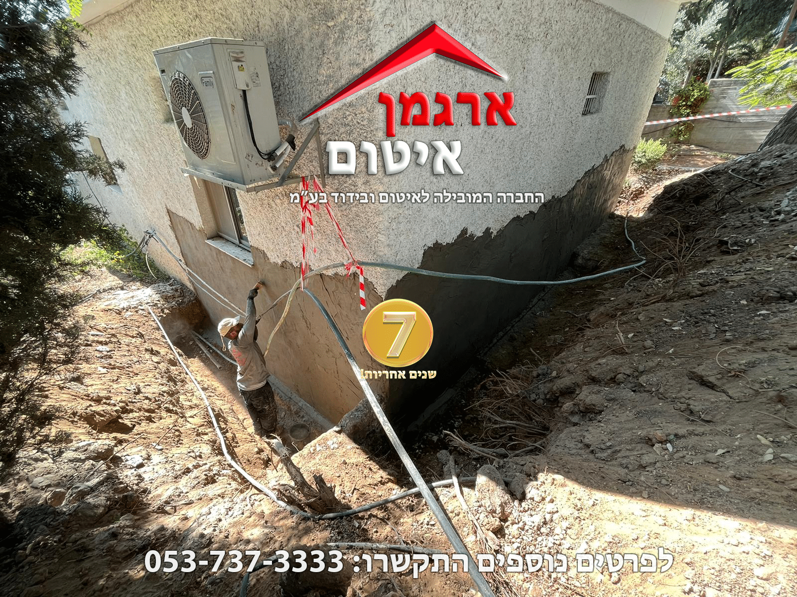 איטום וחפירה מסביב למבנה